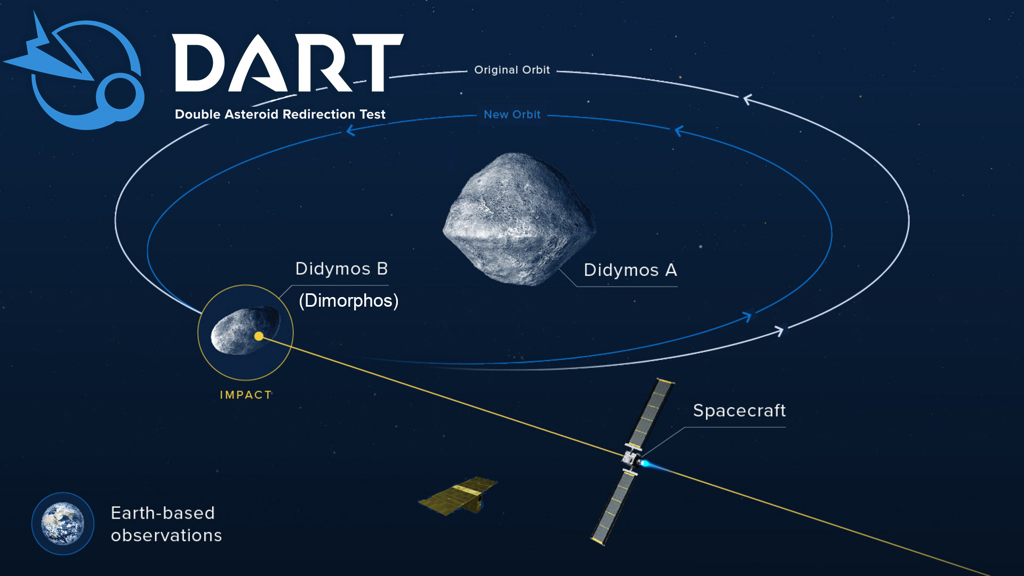 Den amerikanske romsonden DART ble den 24. november 2021 skutt opp og sendt på en kollisjonskurs mot den lille asteroiden Dimorphos. Sammenstøtet skal skje 22. september 2022, med en relativ hastighet på over 24 000 km/t, og være kraftig nok til at det skal gi en registrerbar endring av banen til Dimorphos. (Tidspunktet for kollisjonen er senere justert til 26. september.)
