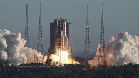 Lang Marsj 5B-raketten forlater oppskytingsrampen på Hainan 5. mai (China Aerospace Science and Technology Corp.)