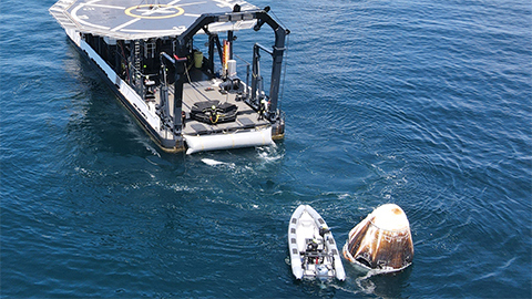 NASA-astronautene Robert Behnken og Douglas Hurley, også kjent som Bob og Doug, plasket i god behold ned i Mexicogolfen utenfor Florida i Dragon Crew-kapselen Endeavour kl. 20:48 norsk sommertid 2. august, etter 64 dager i rommet. Litt etter kl. 22 ble de hjulpet ut av kapselen, som da allerede var heist om bord i bergingsfartøyet "Go Navigator". Etter en medisinsk sjekk ble astronautene brakt i land med et helikopter.