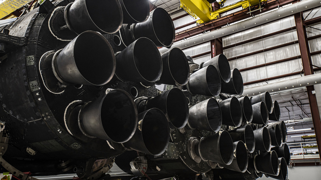 Falcon Heavy har tre trinn ved siden av hverandre, hver av dem med ni motorer. Falcon 9 har ett av disse som sitt førstetrinn. Øvre trinn har kun én motor, basert på samme grunndesign.